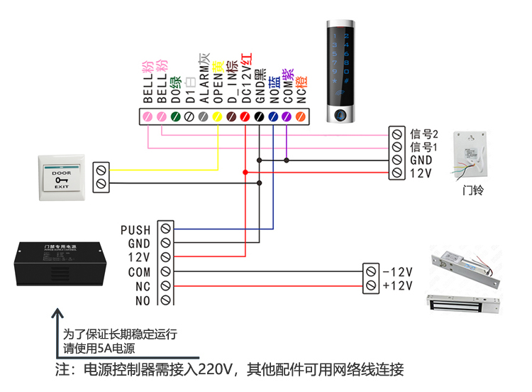 ⑦ 输出短路保护:电锁或报警输出短路时100μs内自动关闭输出