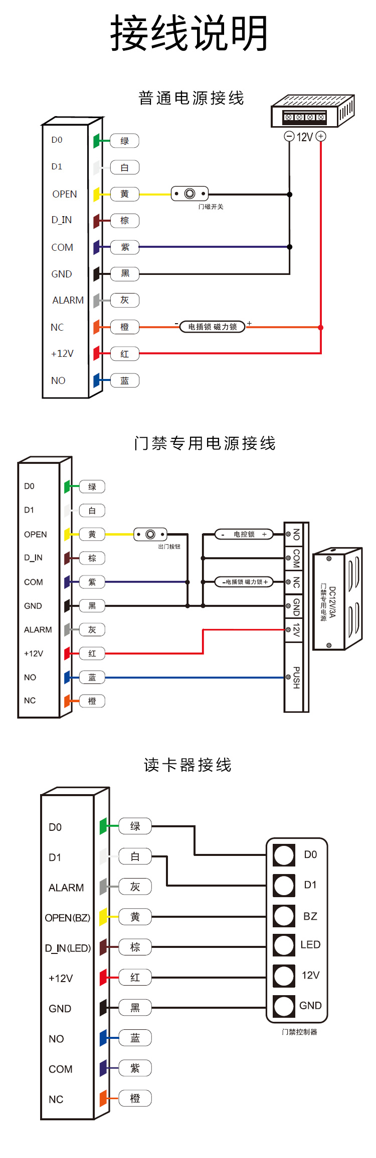 ⑦ 开锁信号采用继电器的NO、NC、COM输出
