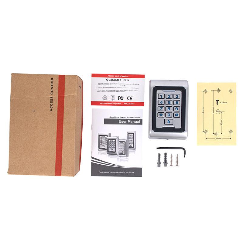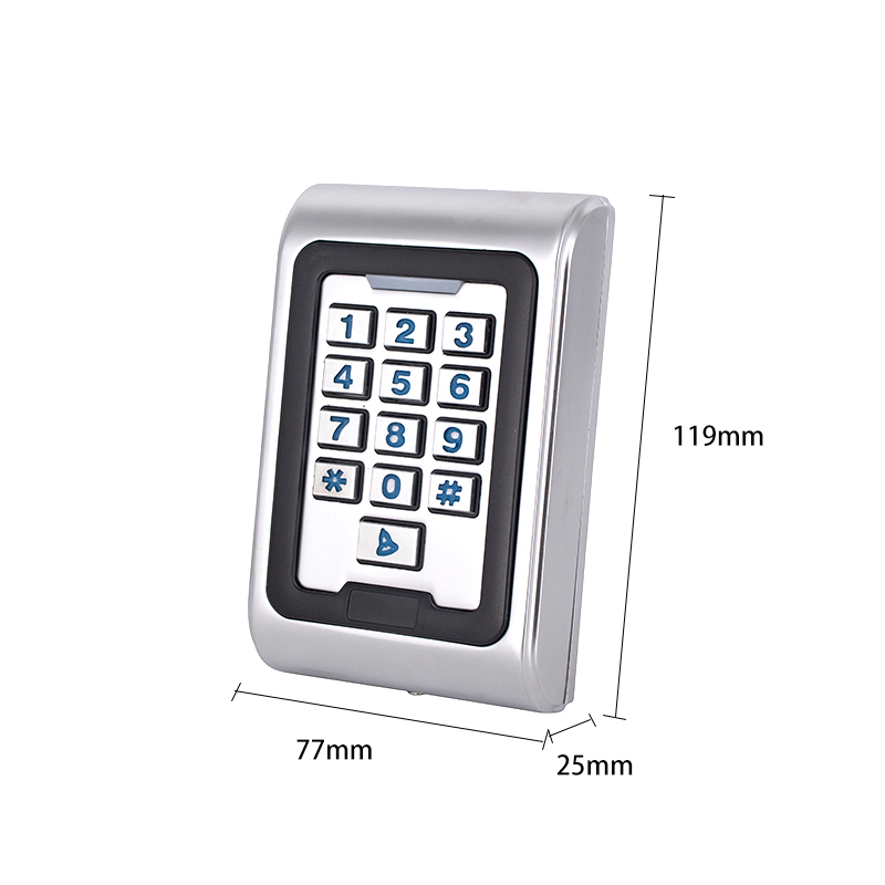 本产品为非接触式感应卡金属密码门禁一体机,支持EM、Mifare两种感应卡,它采用独特的金属材质设计,耐用的背光金属键盘,内置美国Atmel微处理器,抗干扰能力强,安全性和可靠性高,功能强大,使用方便。