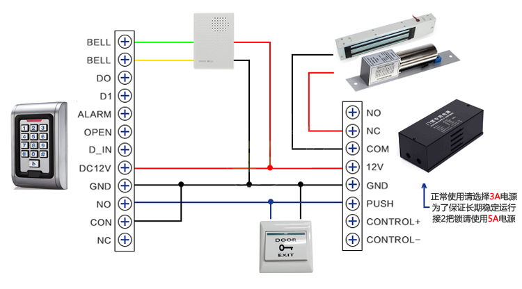 电锁输出:≤3A报警输出:≤20A