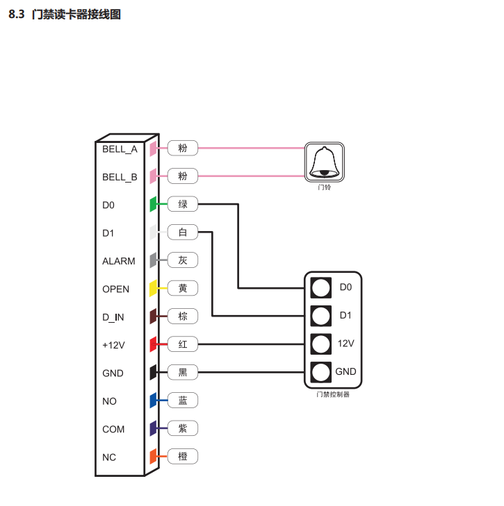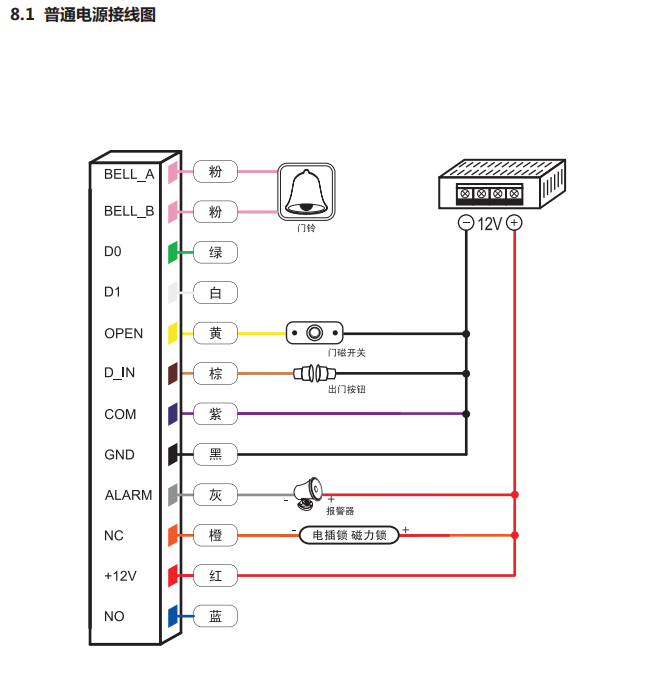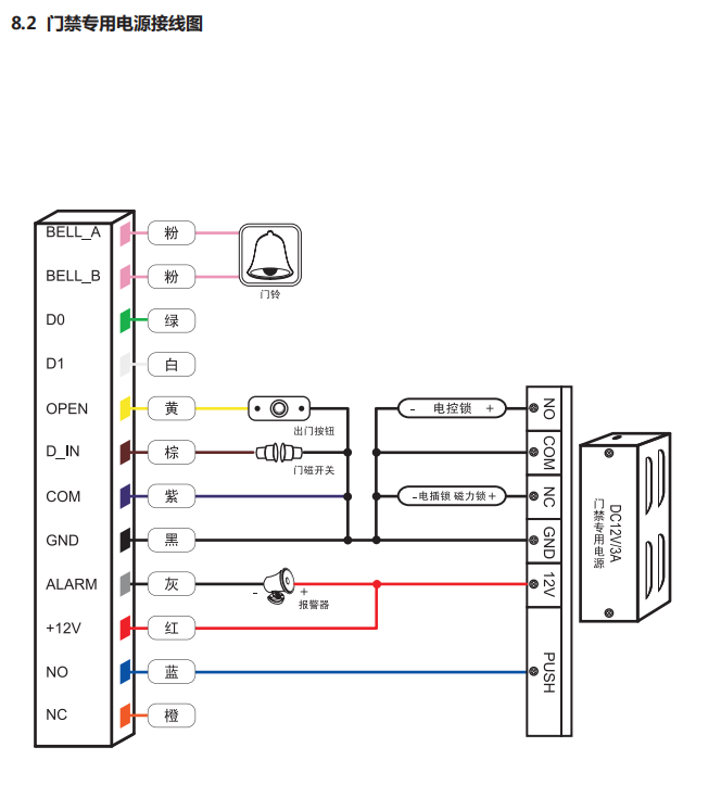 电锁输出:≤3A报警输出:≤20A