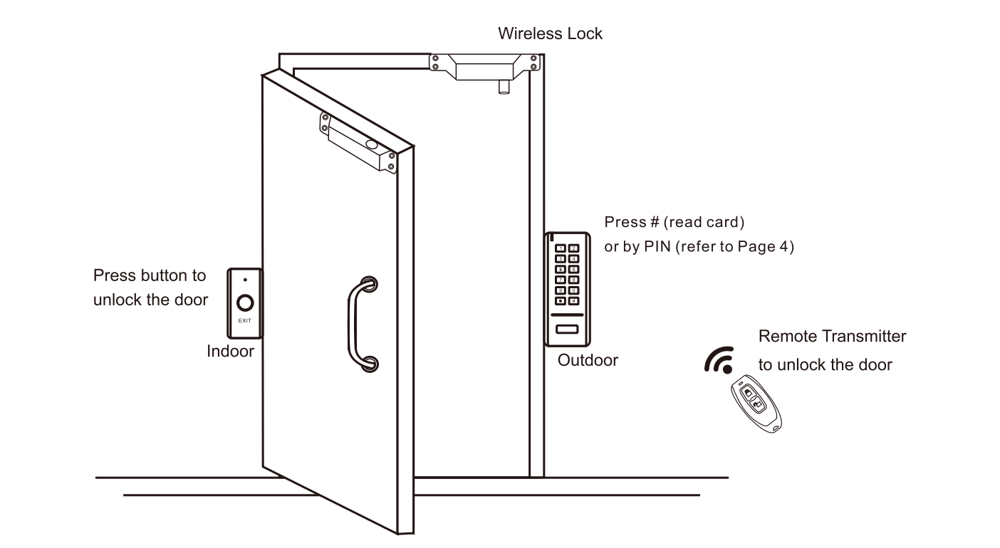 本产品是家用无线智能门禁机,采用电池供电,人性化设计。配备高强度3M胶,傻瓜式安装方式。采用433M滚动码无线通讯技术,高安全性,具有自动上锁及手动上锁功能。机器超低功耗设计,超省电。无线电插锁、键盘机、开门按钮、遥控器每天开门约30次,电池可以使用1年。